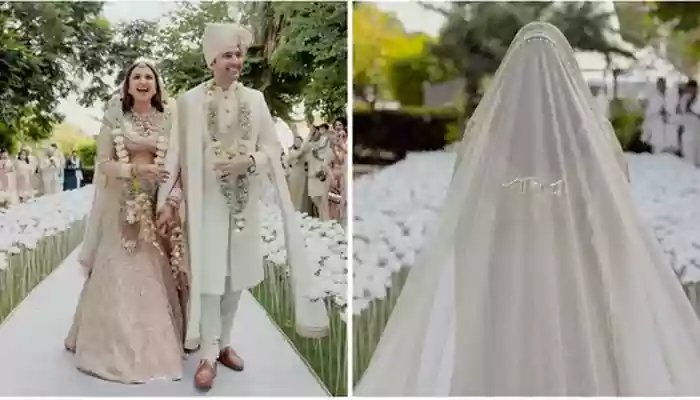 Parineeti Chopra and Raghav Chadha decked up in dreamy ensembles for their ‘pearl white wedding’. Take a closer look at the bride's veil.